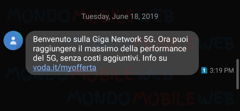 Inoltre, è stato anche inviato il messaggio, anticipato da MondoMobileWeb, che certifica l’avvenuta attivazione dell’opzione Promo 5G e della conseguente possibilità di navigare sulla Giga Network 5G.