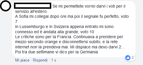 Arrivano tuttavia anche dalla pagina Facebook dell’operatore segnali di buoni livelli di accessibilità ai servizi all’estero.