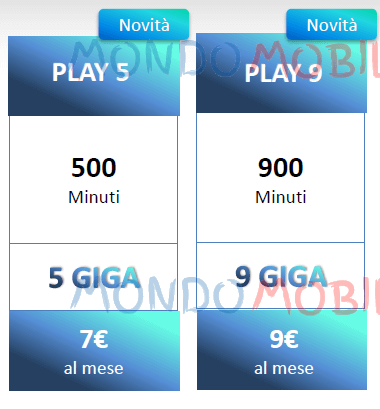 - PLAY 9 con 900 minuti verso tutti i numeri nazionali e 9 GB di internet a 10 euro al mese.