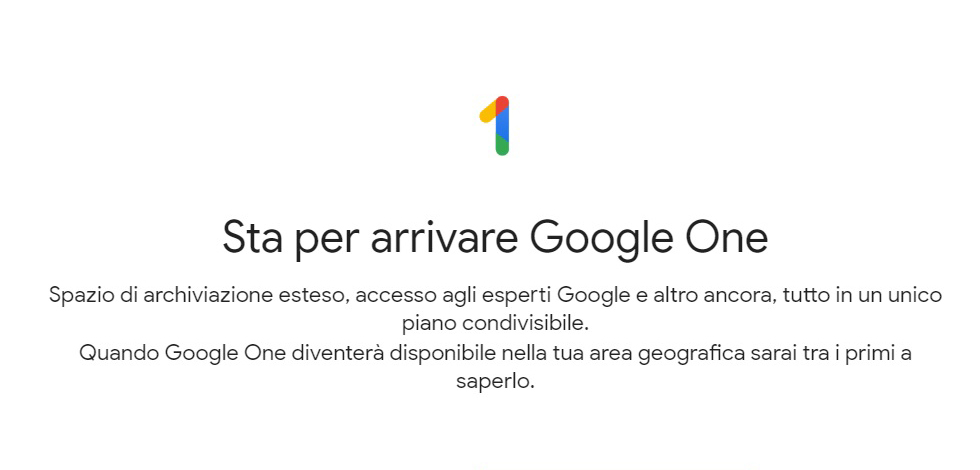 Google One non è ancora disponibile, ma sono già note alcune limitazioni. Infatti se il cliente possiede un piano di archiviazione Google Drive a pagamento, l’upgrade a Google One avrà luogo automaticamente solo nel corso dei mesi a venire.