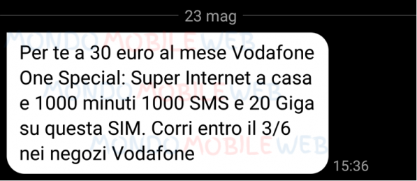 Ecco l’esempio di uno degli SMS inviati ad alcuni clienti Vodafone: