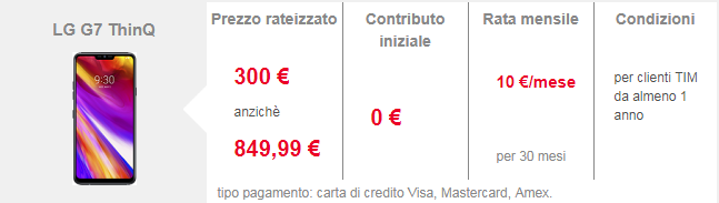 Tim: confermato Lg G7 ThinQ a prezzo rateizzato di 300 euro per i clienti da più di un anno