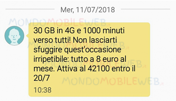 Ecco il testo dell’SMS inviato ad alcuni già clienti Vodafone selezionati con un’offerta dati attiva: