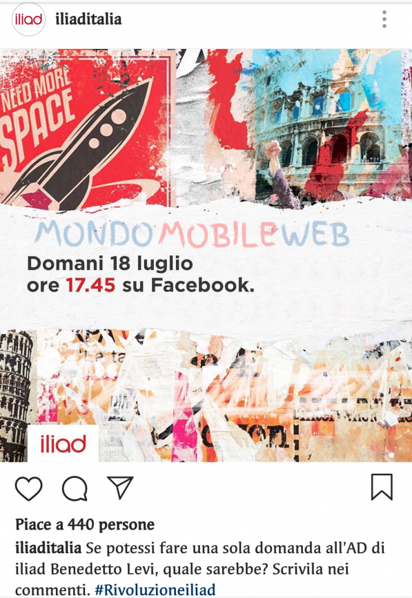 Il post segue la nota tradizione di Iliad, seguendo il format dei precedenti e presentando un’ambigua frase “domani 18 luglio ore 17:45 su Facebook“. La foto è accompagnata da un invito indiretto a formulare una domanda rivolta all’AD Benedetto Levi, scrivendola sui commenti.