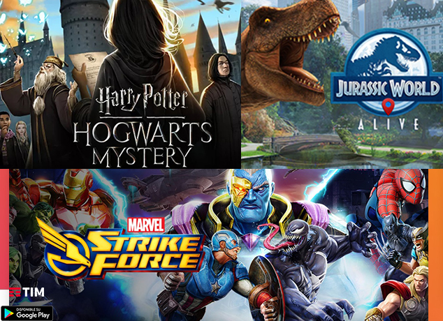 I giochi in promozione sono: Jurassic World Alive, Harry Potter Hogwarts Mistery e Marvel Strike Force.