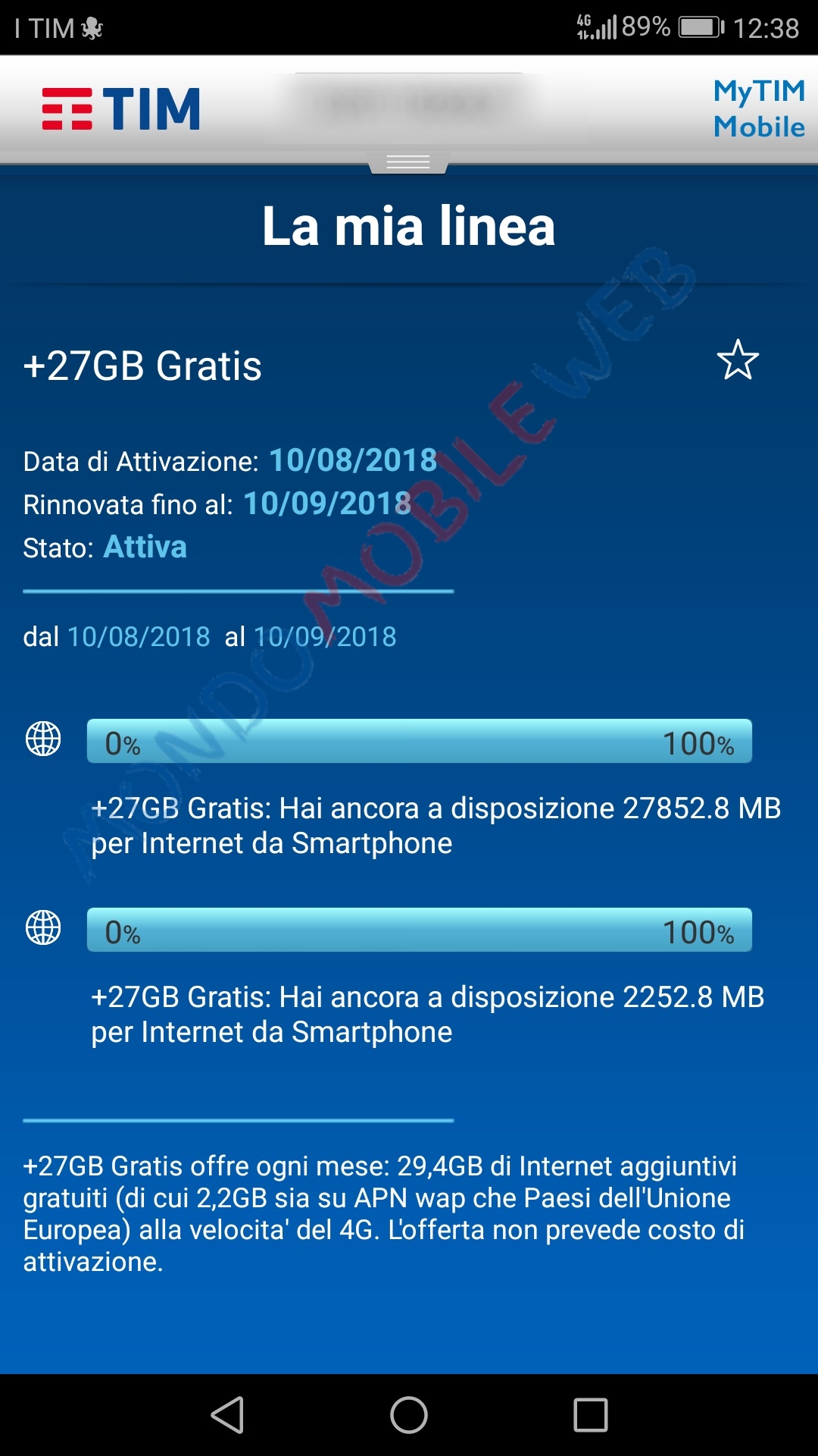 Di seguito, uno screen inviato da un gentile lettore di MondoMobileWeb che mostra l’area personale dell’App MyTIM con l’offerta +27GB Gratis.