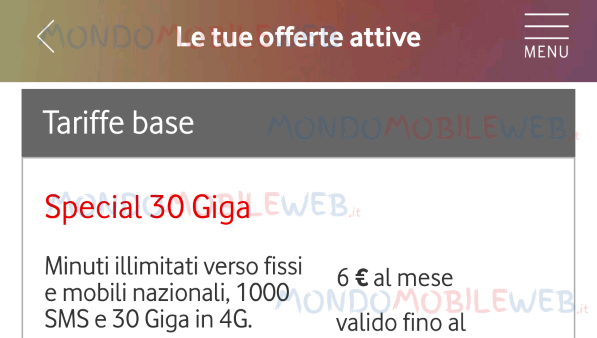 In questo periodo, salvo eventuali cambiamenti, Vodafone Italia sta offrendo in prevention ad alcuni già clienti l’offerta tariffaria Vodafone Special 30GB con minuti illimitati verso tutti, 1000 sms verso tutti e 30 Giga di traffico dati 4G a 6 euro al mese.
