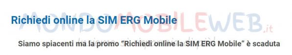 Chiunque voglia farlo infatti, visitando la pagina dedicata all’iniziativa sul sito dell’operatore, si trova d’innanzi al seguente messaggio: “Siamo spiacenti ma la promo Richiedi online la SIM ERG Mobile è scaduta“.