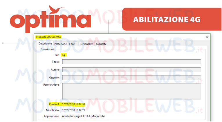 Scaricando il documento PDF, che spiega come abilitare la navigazione 4G dal proprio smartphone, è possibile notare che il giorno di creazione del documento (e probabilmente di inserimento sul sito) è datato 17 Settembre 2018, ossia lo stesso giorno in cui è stata abilitata la rete 4G Vodafone anche ad 1Mobile.