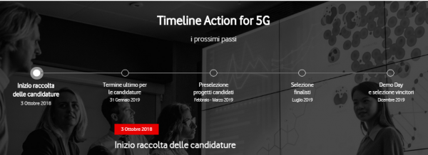 Oggi, 4 Ottobre 2018, Vodafone ha indetto il secondo bando dell’iniziativa Action for 5G, dedicato alle startup e alle piccole e medie imprese che vorranno contribuire con idee innovative allo sviluppo del 5G in Italia tramite progetti di robotica, sensoristica, dispositivi connessi di Realtà Aumentata e Realtà Virtuale. Inoltre sono stati comunicati i progetti vincitori del primo bando.