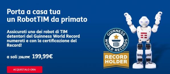 Ormai da qualche mese il colosso delle telecomunicazioni Tim, permette a chi lo desidera, l’acquisto di ognuno dei 1372 robot umanoidi Alpha 1S, vincitori del Guinness World Record stabilito lo scorso Febbraio 2018. Il RobotTIM, essendo usato, viene attualmente venduto, come memorabilia, al prezzo di 199,99 euro.