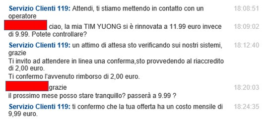 I clienti TIM coinvolti da tale problema, devono contattare il Servizio Clienti chiamando il 119 o via chat per richiedere il rimborso di 2 euro e il ripristino delle condizioni della loro offerta attivata a 9,99 euro al mese.