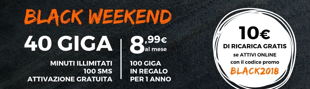 E’ la stessa offerta presente nel sito ufficiale dell’operatore dal 19 Novembre 2018. La differenza è che dal 23 al 25 Novembre 2018 è possibile ricevere una ricarica di 10 euro con il codice coupon Black2018.
