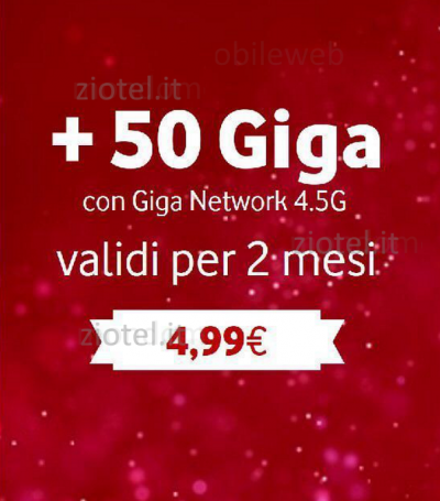 Dal 24 Novembre 2018, salvo eventuali cambiamenti, tutti i nuovi e già clienti Vodafone consumer potranno continuare ad attivare la nuova promozione +50GB che prevede 50 Giga di traffico dati alla velocità massima disponibile.