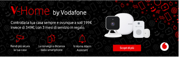 V-Home by Vodafone è un dispositivo IoT realizzato in collaborazione con Samsung e lanciato lo scorso 16 Luglio 2018, che consiste in una serie di servizi e prodotti connessi per la protezione e il controllo della propria abitazione. Il dispositivo utilizza anche la piattaforma SmartThings di Samsung, che favorisce l’interazione tra i device connessi nella propria abitazione in maniera agevole, utilizzando il proprio smartphone. È quindi possibile controllare la propria casa da remoto in qualsiasi momento.