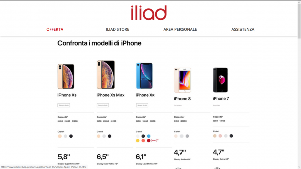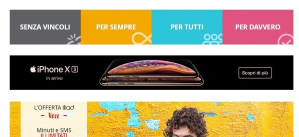 Nello specifico del sito ufficiale Iliad, la notizia è stata ufficializzata mediante pubblicazione di un banner pubblicitario, visibile nella home page, che promuove dinamicamente l’imminente disponibilità degli ultimi gioiellini di casa Apple, iPhone XS, XS Max ed iPhone XR.