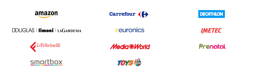 In totale, saranno messe in palio 330 Gift Card dal valore unitario di 50 euro durante l’intero periodo promozionale così distribuiti: 30 Gift Card Carrefour il 14 Dicembre 2018, 30 Gift Card Smartbox il 15 Dicembre 2018, 30 Gift Card Prenatal il 16 Dicembre 2018, 30 Gift Card Amazon il 17 Dicembre 2018, 30 Gift Card Decathlon il 18 Dicembre 2018, 30 Gift Card Imetec il 19 Dicembre 2018, 30 Gift Card Euronics il 20 Dicembre 2018, 30 Gift Card Toys il 21 Dicembre 2018, 30 Gift Card Douglas il 22 Dicembre 2018, 30 Gift Card Mediaworld il 23 Dicembre 2018, 30 Gift Card Feltrinelli il 24 Dicembre 2018.