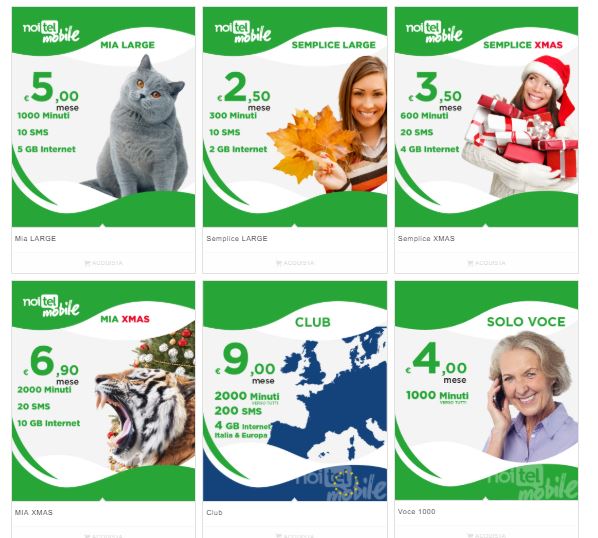 NoiTel MIA Xsmas: costituita da 2000 minuti di chiamate verso tutti, 20 SMS e 10 Giga di internet in 3G al prezzo di 6,90 euro al mese;