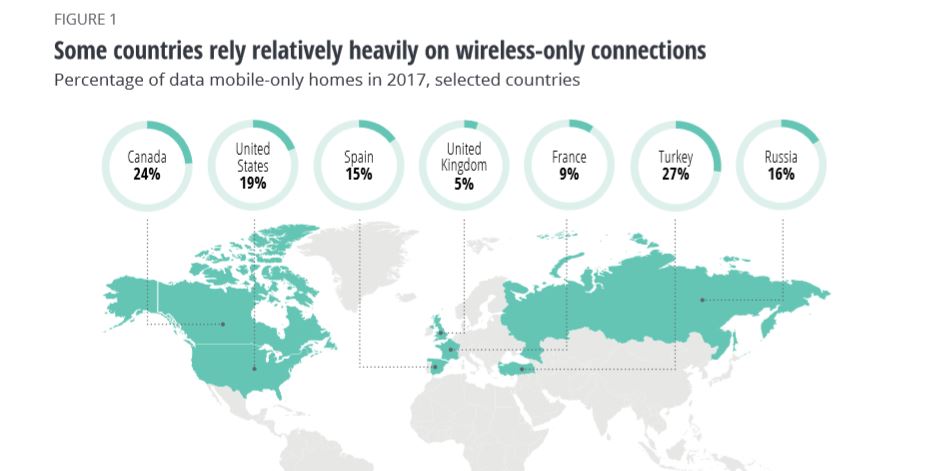 Sui servizi FWA, i pronostici risultano invece poco felici. Secondo quanto riportato, i vantaggi di tale tecnologia potrebbero risultare adeguati solamente nei Paesi in cui l’alternativa in FTTH risulti molto costosa.