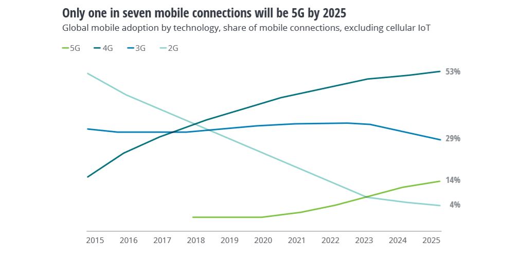 Per queste ragioni, il 5G potrebbe ancora costituire una nicchia tecnologica per molti anni. Infatti, solo una connessione su sette sfrutterà la rete di nuova generazione nel 2025, secondo il report di Deloitte.