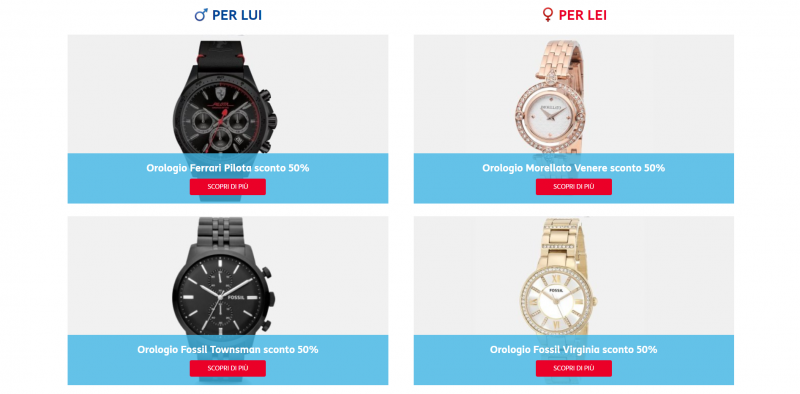Inoltre, sono disponibile anche degli sconti del 50% su alcuni prodotti come orologi, bracciali, collane e orecchini di marchi quali Scuderia Ferrari, Morellato, Fossil e Sector. Tutti questi prodotti sono da acquistare online tramite il sito kronoshop.com entro il 24 Febbraio 2019, salvo esaurimento scorte.