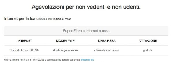 Per ulteriori informazioni sulle offerte agevolate per disabili si consiglia la lettura della sezione dedicata presente sul sito ufficiale di Tre.