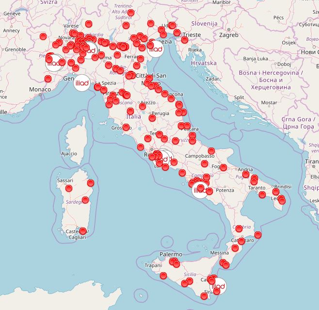 Per ulteriori dettagli su tutte le città in cui sono presenti dei corner Iliad, con precisa ubicazione, si rimanda all’approfondimento dedicato.