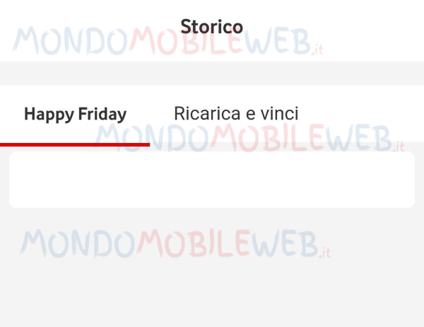 Inoltre, cliccando sul tasto “Storico” del menu dedicato a Vodafone Happy, è visibile una nuova sezione denominata “Ricarica e vinci”, che potrebbe essere riferita ad una nuova iniziativa che potrebbe essere svelata nelle prossime settimane.