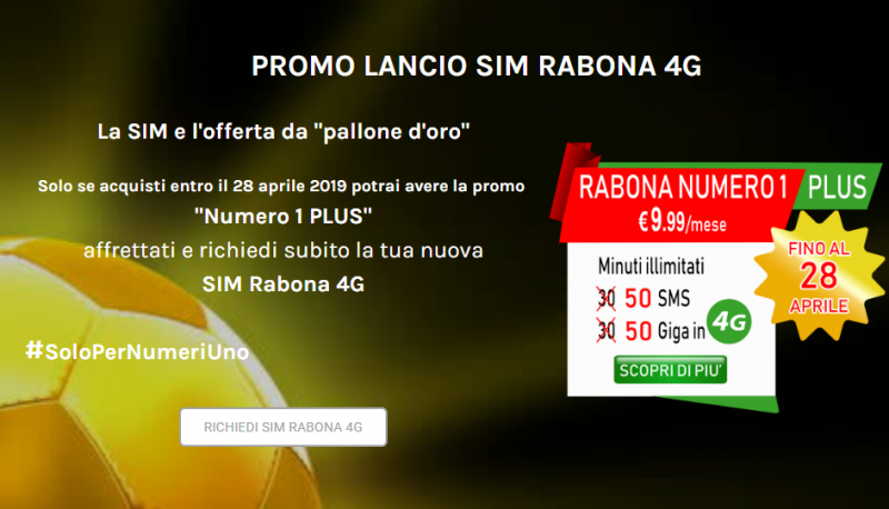 Di conseguenza, tutti i nuovi clienti Rabona Mobile potranno continuare ad attivare l’offerta lancio Numero 1 Plus al costo mensile di 9,99 euro con 50 Giga di traffico dati in 4G, 50 SMS e minuti illimitati fino al 1° Maggio 2019.