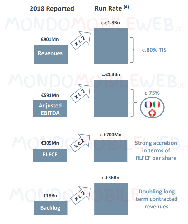 Si ricorda che Cellnex è sempre stata particolarmente interessata al mercato italiano: con il 28% dei ricavi nel 2018, l’Italia è il secondo mercato di riferimento per l’azienda, dopo la Spagna e prima della Francia, che contribuisce solamente per il 7%.