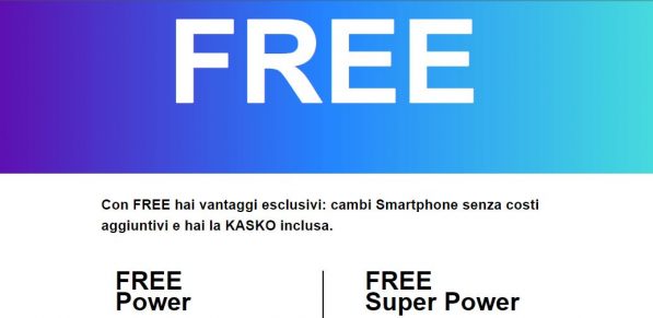 Si ricorda inoltre, che l’utente che decide di attivare una delle opzioni tariffarie Free Power o Free Super Power, gode, senza ulteriori costi aggiuntivi, dell’abbonamento semestrale ad Apple Music, del servizio Giga Bank che permette di accumulare i Giga non utilizzati nell’arco del mese, ma anche dell’adesione all’iniziativa Grande Cinema 3, con la quale si usufruisce di uno sconto pari al 50% del valore del biglietto acquistato dall’intestatario della Card 2×1 e di uno sconto pari al 50% del valore del biglietto acquistato dalla persona portata dall’intestatario della Card 2×1, utilizzabile per andare al cinema fino a 2 volte al giorno, festività incluse.