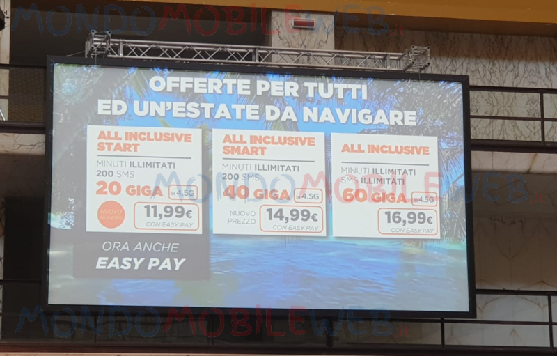 Sottoscrivendo una delle offerte sopraelencate, il cliente riceverà 100 Giga in regalo al mese per l’estate con Easy Pay o 50 Giga in regalo con addebito su credito residuo.