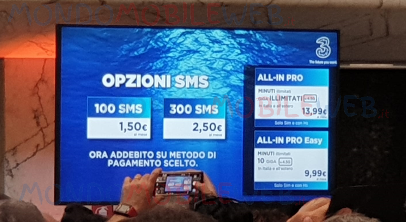 In più, i nuovi e già clienti Tre potranno aggiungere al proprio bundle l’opzione 100 SMS a 1,50 euro al mese oppure quella con 300 SMS che, al contrario dell’attuale versione, avrà un costo di 2,50 euro al mese.