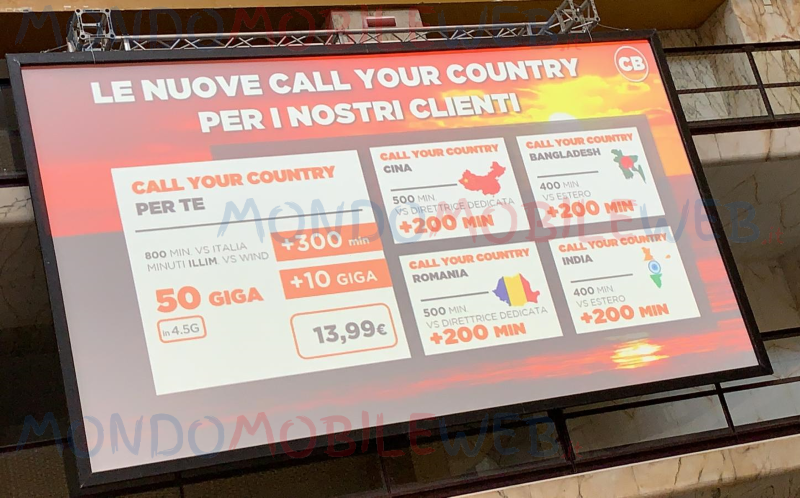 Saranno aggiornate anche le attuali offerte Call Your Country con rinnovo mensile: Call Your Country Super con 500 minuti in Italia, 250 minuti verso l’Estero, minuti illimitati verso Wind e 30 Giga di traffico dati al costo mensile di 9,99 euro (Easy Pay); Call Your Country Premium con 500 minuti in Italia, 200 minuti verso l’Estero e minuti illimitati verso Wind insieme a 40 Giga di traffico dati al costo mensile di 11,99 euro ed, infine, Call Your Country One con 500 minuti verso l’Estero e minuti illimitati in Italia insieme a 40 Giga di traffico dati al costo mensile di 19,99 euro.