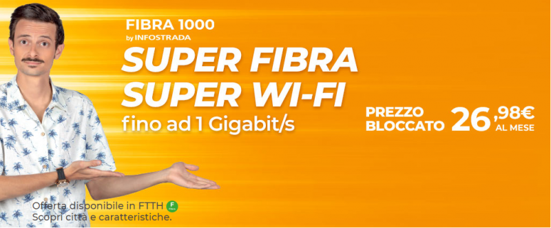 La promozione di rete fissa Wind disponibile online (ecco il link diretto) prevede internet illimitato in ADSL, Misto Fibra Rame FTTC (anche Bitstream NGA) o Fibra FTTH (by Open Fiber) fino a 1000 Mega, chiamate a consumo, modem in vendita abbinata a 5,99 euro al mese per 48 mesi (incluso nel prezzo finale) e una SIM dati Wind con 100 Giga mensili a partire da 26,98 euro al mese.
