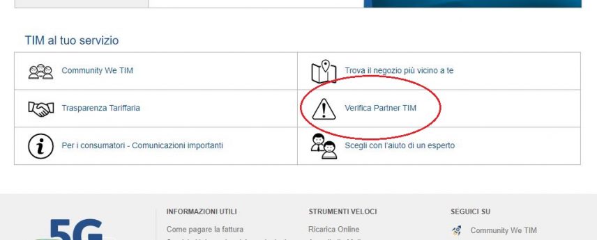 In alternativa, la pagina in questione è visitabile inserendo il link https://www.tim.it/verifica-partner-tim, all’interno della barra degli indirizzi del proprio browser web.
