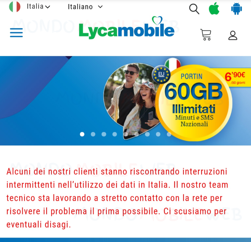 Ecco il testo apparso nel tardo pomeriggio di oggi, 29 Luglio 2019, nella home page del sito ufficiale di Lycamobile: