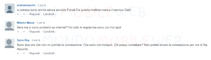 Anche sulla pagina Facebook dell’operatore sono comparsi diversi commenti di lamentela che riportano il problema dell’assenza di connessione dati o di fonia.