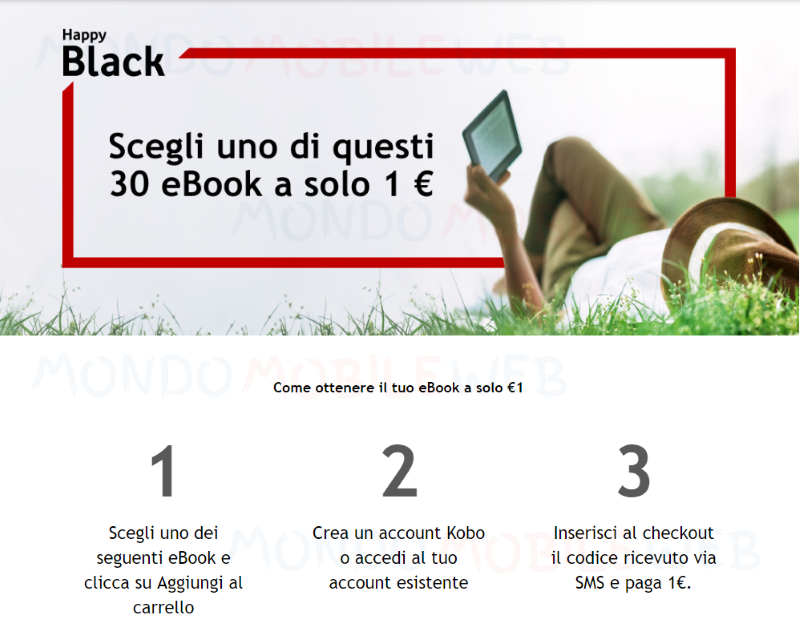 Per usufruire del vantaggio sarà necessario visitare la pagina dedicata all’iniziativa (www.kobo.com/happyblack), selezionare l’e-book che si preferisce, inserire il codice ricevuto via SMS o presente nella sezione Storico dell’app My Vodafone nell’apposito campo prima di procedere con il pagamento.