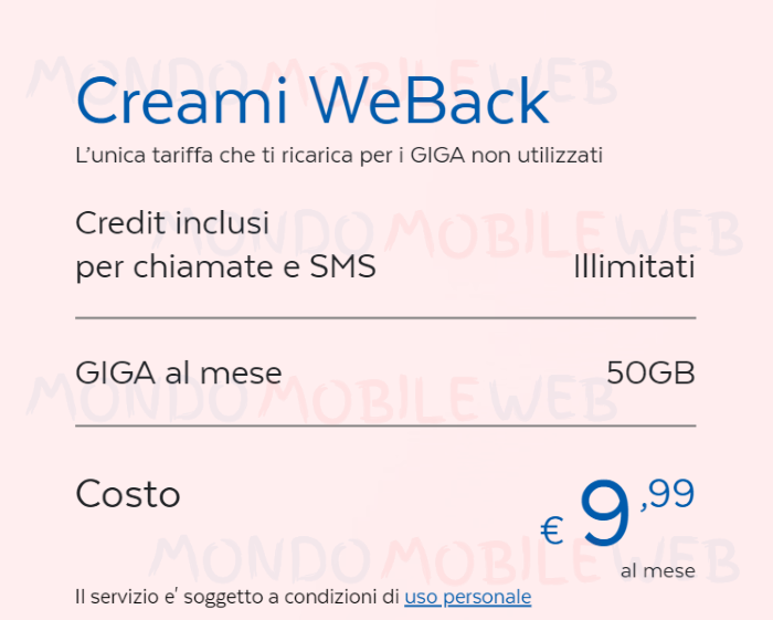 Sia Creami WeBack che Creami Style sono disponibili solo per i nuovi clienti, sia per l’attivazione di un nuovo numero che per la portabilità da altro operatore. Non sono invece disponibili per il cambio offerta per i già clienti.