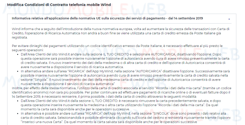 Il brand Wind, dell’operatore congiunto Wind Tre, sta informando i propri clienti in merito ad alcune modifiche per aumentare la sicurezza delle transazioni con carta di credito, a seguito della nuova normativa europea.