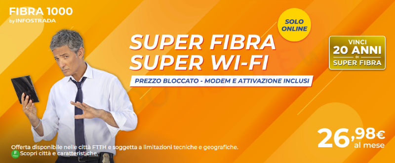 In dettaglio, la partecipazione all’operazione a premi sarà quindi valida con le offerte denominate Fibra 1000, Internet 200 e Internet 100 con modem in vendita abbinata, e Absolute 1000, Absolute 200 e Absolute 100 senza modem incluso.
