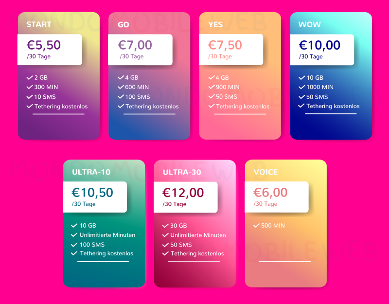 Le nuove offerte sono denominate rispettivamente Start, Go, Yes, Wow, Ultra-10, Ultra-30 e Voice, ecco cosa comprendono: