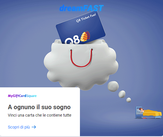 Per il mese di Ottobre 2019, l’operatore telefonico Fastweb ha riservato diverse iniziative dedicate ai tutti i suoi clienti inscritti al programma di fidelizzazione gratuito liveFAST. In particolare, con il concorso a premi instant win dreamFAST, ogni giorno e per tutto il mese di Ottobre, il cliente avrà la possibilità di vincere una MyGiftCard Square dal valore di 100 euro.