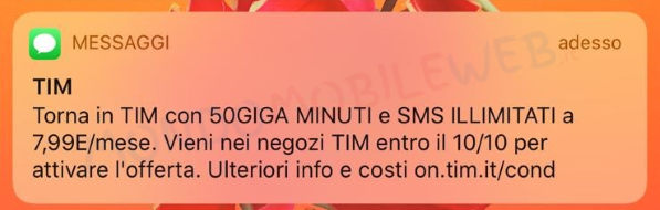 L’operatore di telefonia mobile TIM da alcune ore ha avviatato una nuova campagna sms winback, rivolta ad alcuni suoi ex clienti, per l’attivazione dell’offerta ricaricabile Tim Steel 50 Giga a 7,99 euro al mese.
