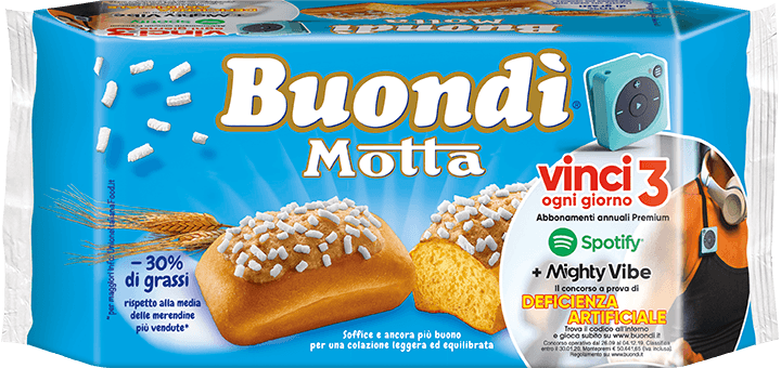 I prodotti promozionati sono Buondì Classico, Buondì Albicocca, Buondì Cacao, Buondì Ciliegia, Buondì Cioccolato e Buondì Integrale; tutte in confezioni promozionate da 6 pezzi.