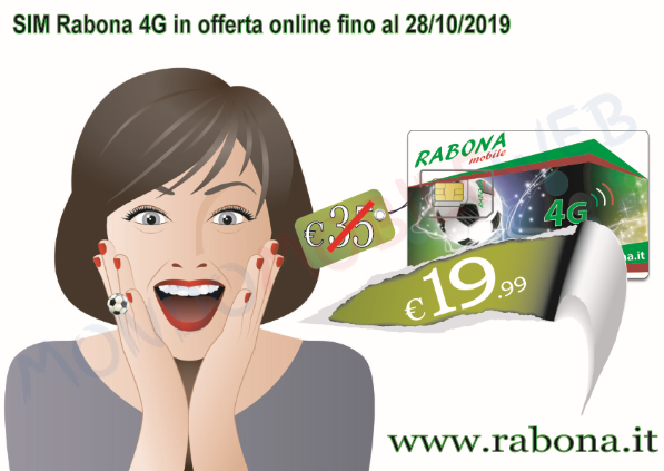 In questo modo, durante questo periodo il costo iniziale da sostenere per acquistare una delle offerte Rabona Mobile sarà pari a 19,99 euro, che comprende sia il costo della SIM (normalmente 25 euro) che il costo della prima ricarica utile al pagamento del primo mese anticipato e dell’eventuale costo di attivazione (normalmente 10 euro).