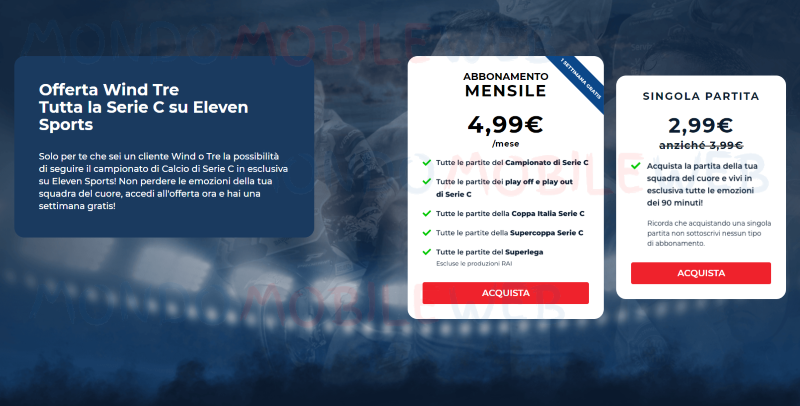 Eleven Sports offre l’acquisto di partite singole o abbonamento mensile anche ai clienti Wind Tre