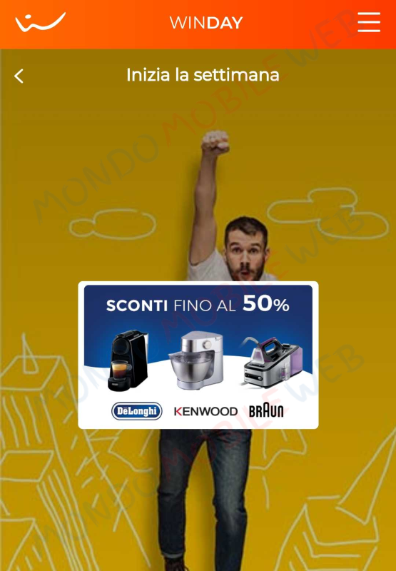 Oggi, Lunedì 10 Febbraio 2020, comincia una nuova settimana di iniziative per i clienti Wind iscritti al programma fedeltà WinDay. Oggi si avranno sconti fino al 50% su alcuni elettrodomestici dei marchi del gruppo De’Longhi.