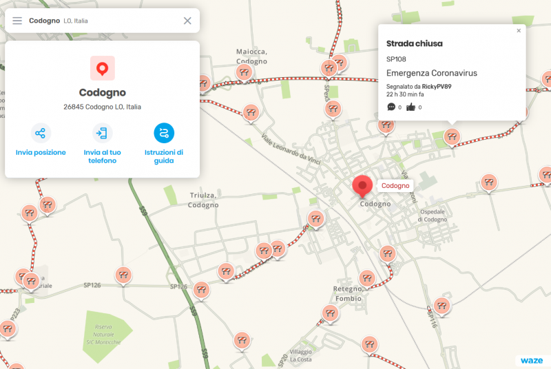 In seguito all’emergenza di Coronavirus che sta colpendo il Nord Italia, la community italiana di Waze ha deciso di attivarsi volontariamente nell’intento di aggiornare in tempo reale la mappa stradale delle aree interessate, cosi da informare i cittadini in transito nelle aree limitrofe a quelle bloccate e per ridurre il più possibile eventuali disagi per i mezzi autorizzati all’approvvigionamento quotidiano degli abitanti delle zone poste in isolamento.